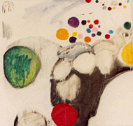 Karen Moser creates fragile spheres of clay, drawing inspiration from relics ranging from ancient tomb graffiti to everyday discarded objects. Grant Smith employs a talking computer, environmental sounds and a revolving slide show to explore the multiple layers of words, noises and silences by which our sense of presence is defined. Photographic images from a solo climb up a Scottish mountin are translated into large paint and ink drawings as Lucinda Holmes surveys internal landscapes. Using corrugated plastic to construct modular units, Gavin Peacock explores the realm between art and its commercialisation, and invites visitors to participate in the creation of a piece whose development will be documented and displayed. Woven tapestries by Theresa Sundt combine colour, texture and light in luminous mixed media works. |