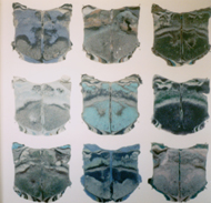 Alasdair Willis uses a computer to generate complex sequential images based on patterns. The result is a large and dramatic wall installation composed of hundreds of digital prints.