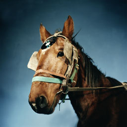 in the style of 19th Century studio photographs, highlighting the contrast between these underfed animals and the thoroughbred beasts that it is more usual to commission a portrait of. At the Biennal of Mercosur 2005, in Porto Allegre in Brazil, these photographs were combined in an installation with a video 'Primavera' which was made by attaching a camera to a horses head in order to capture the animals view point as it moved through the city of Cordoba going about its work.