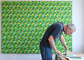 Joshua Uvieghara sees his work as a means of exploring personal issues around philosophy, religion, and social interaction, using painting, drawing and installation as the vehicle for his ideas. He draws upon photography, film stills, found objects and other materials, and employs collage as a means of bringing these disparate images and ideas together within a single work. His approach provokes the viewer into finding new ways to “read” the picture, in order to reconcile the tensions inherent in these ambiguous images.
